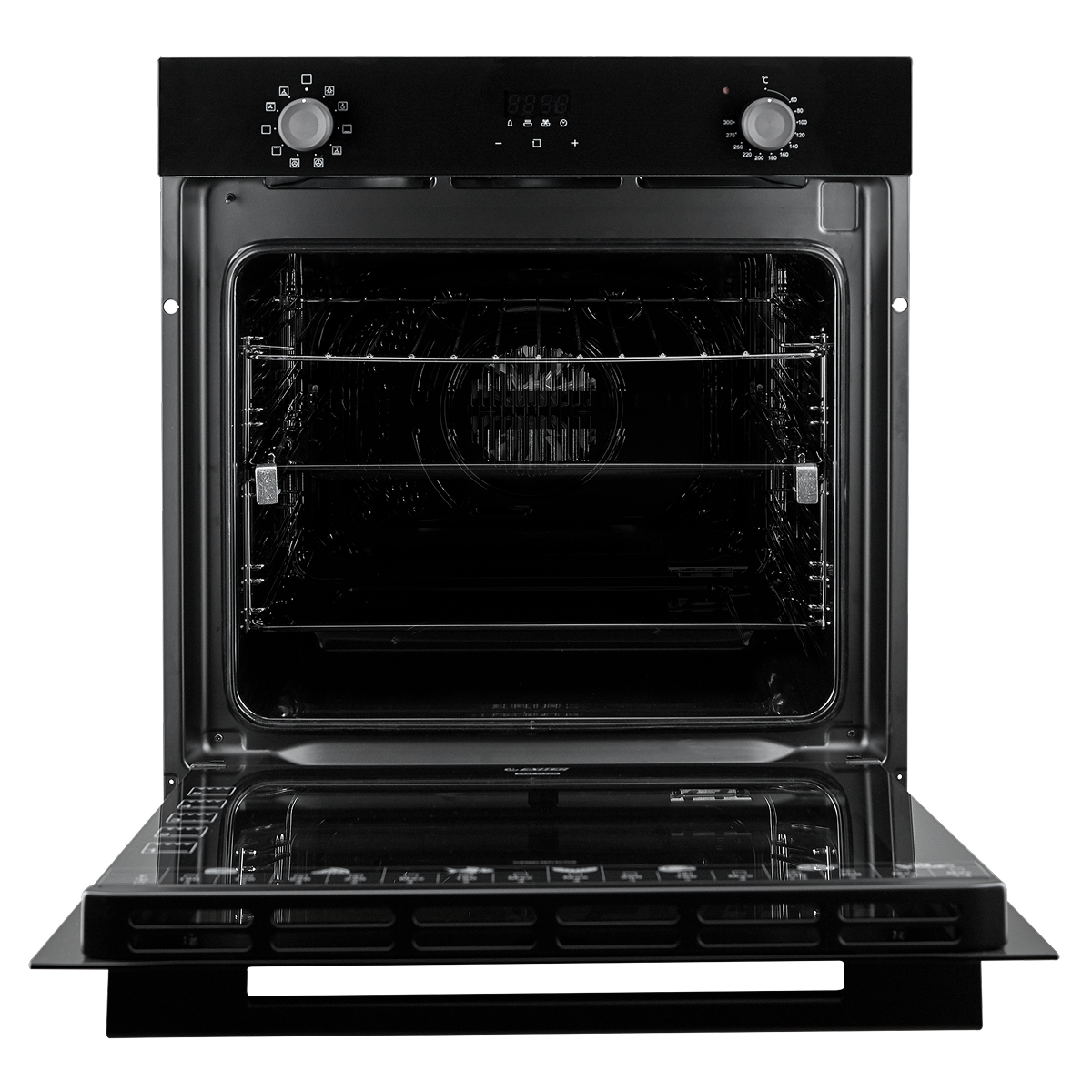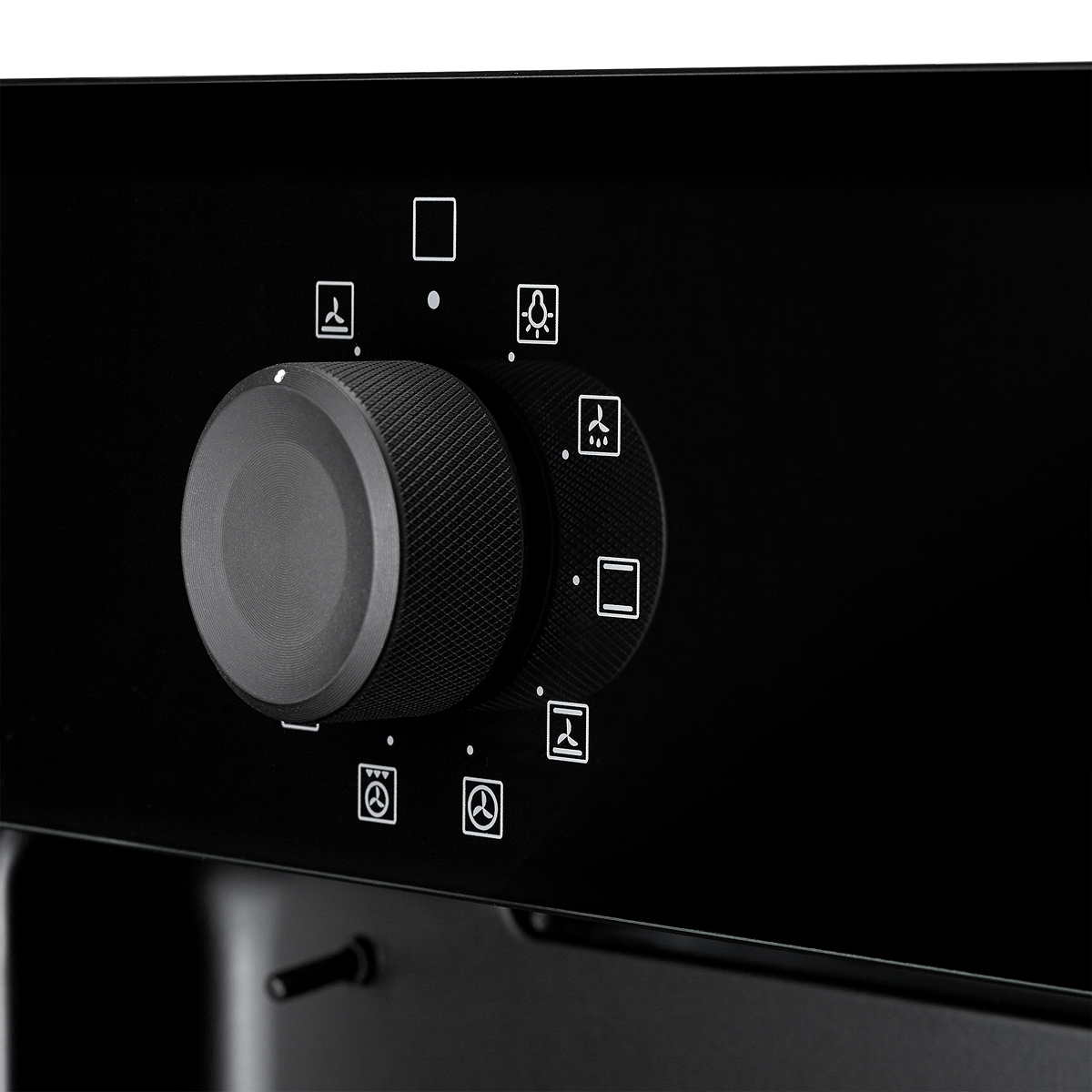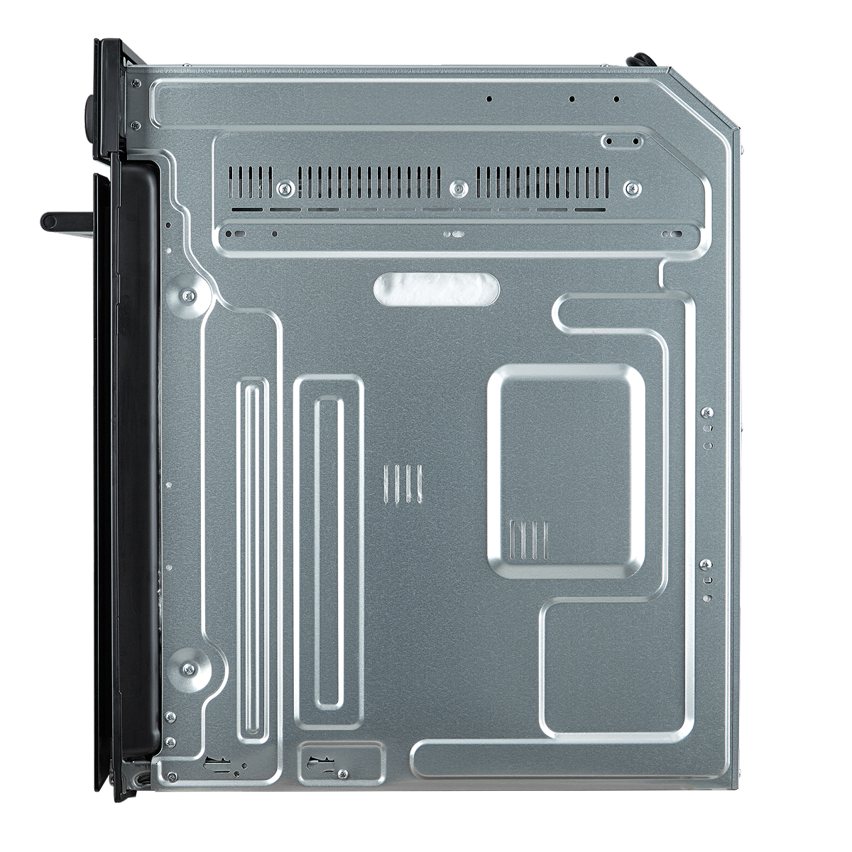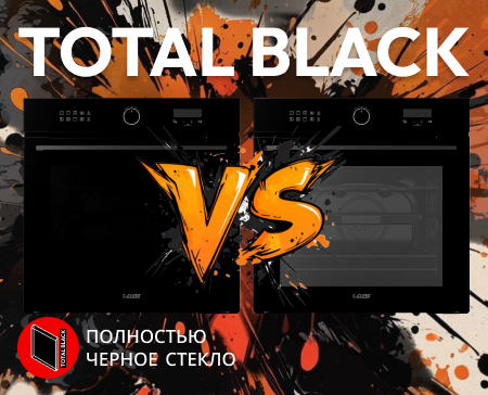 Эффект Total Black с зеркальным отражением достигается за счет сплошной тонировки переднего термостойкого стекла дверцы духового шкафа. В выключенном состоянии внутренняя часть духовки скрыта за тройным остеклением, но при приготовлении центральная часть становится видна.