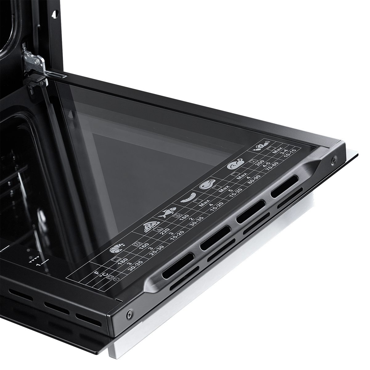 Телескопические направляющие позволяют оставить выдвинутый противень за пределами духовки. Они также предотвращают его случайное падение.